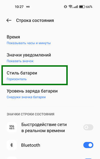 4. Здесь нас интересует пункт «Стиль батареи», жмём на него.
