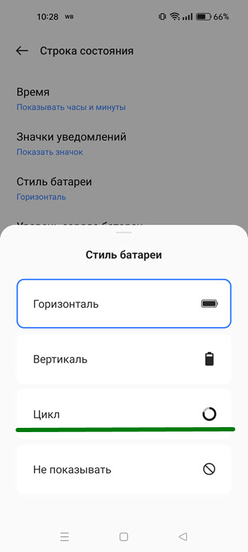 В процессе включения этой функции, я обнаружил одну интересную возможность, оказывается в последних версиях Андроид, так-же имеется возможность изменения стиля батареи.