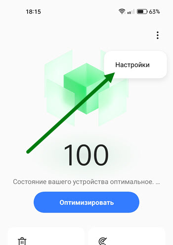 3. Переходим в настройки.