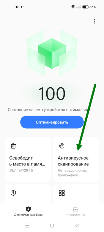 6. После возвращаемся на главный экран и жмём на кнопку «Сканирование».