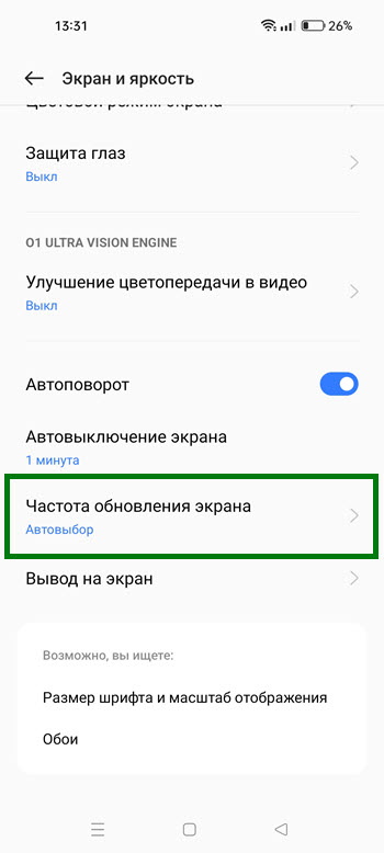 Как на телефоне Realme включить 60, 90 или 120 Герц