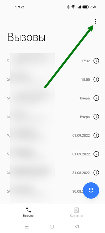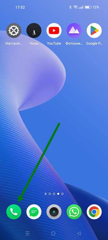 1. Заходим в приложение «Телефон» нажав на зелёную трубку.