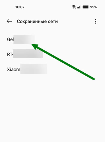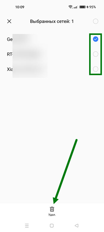 Для удаление ненужной сети, нажимаем на неё и удерживаем некоторое время.