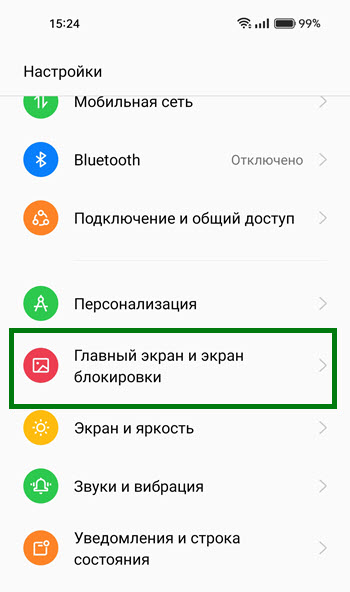 2. Далее переходим в раздел «Главный экран и экран блокировки».