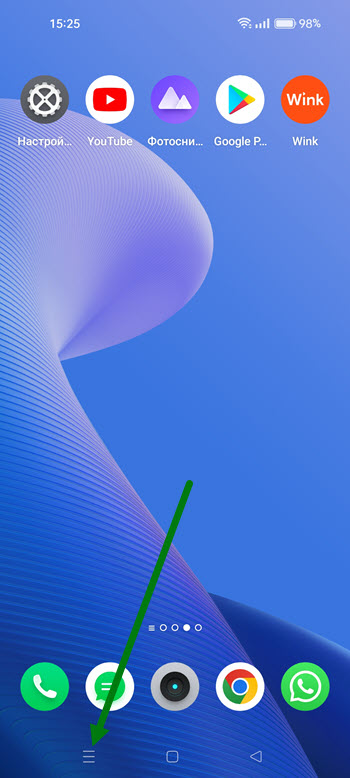5. Возвращаемся на главный экран, теперь необходимо нажать на кнопку «Недавние приложения».