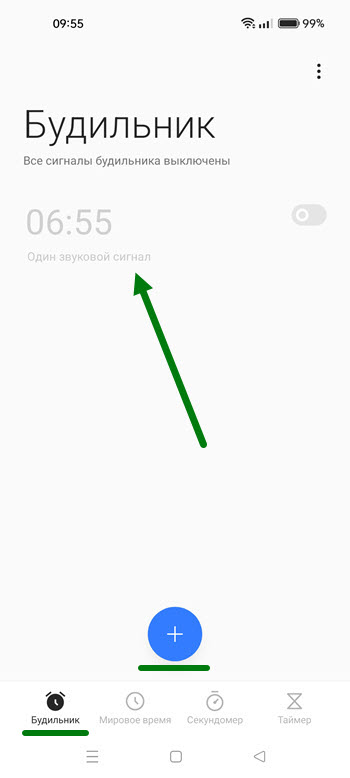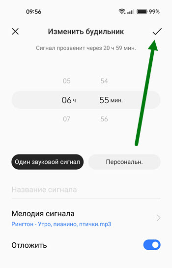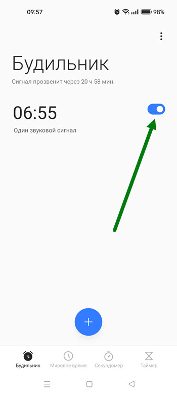 8. При сохранении у нас активировался будильник, если в нём нет необходимости, сразу же отключаем.