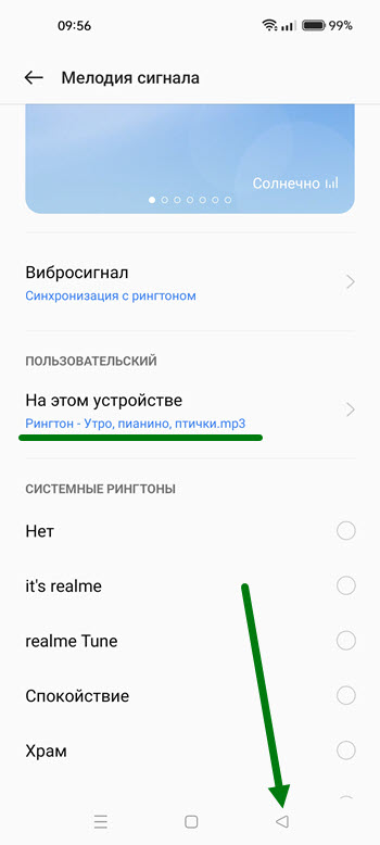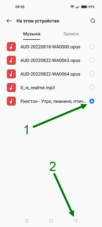 5. Выделяем нужный рингтон, после делаем шаг назад.