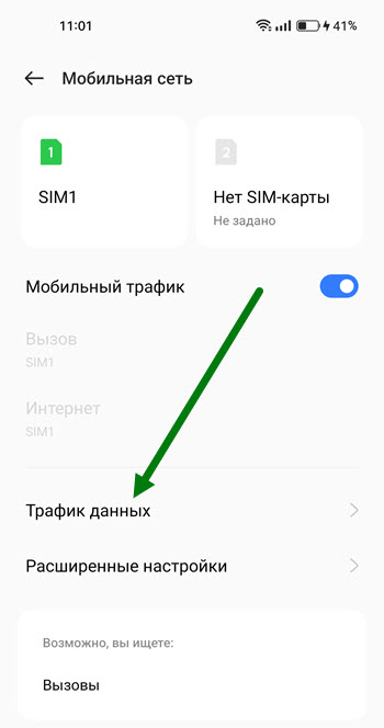 3. На открывшейся странице, нас интересует пункт «Трафик данных», жмём на него.