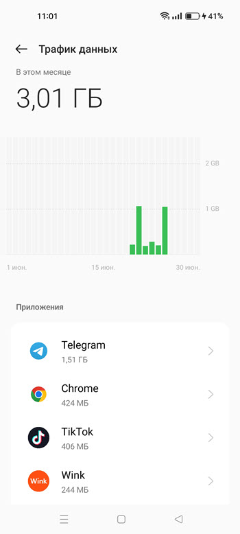 В итоге перед нами откроется детализация по дням, а так-же подробная информация, какое приложение и сколько израсходовало мегабайт.