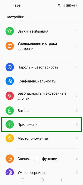 2. Находим раздел «Приложения» и переходим в него.