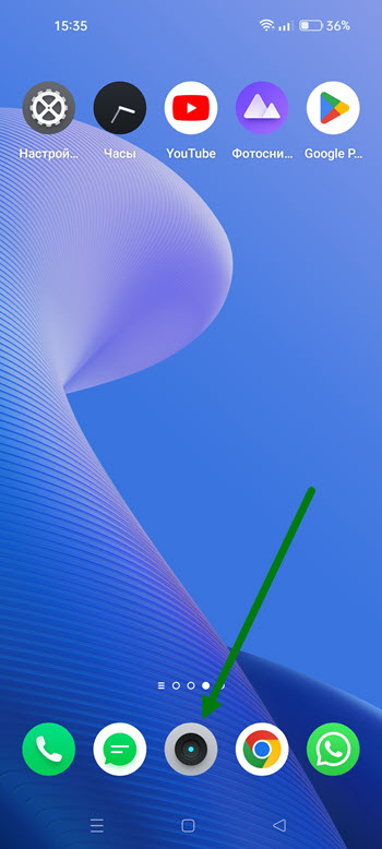1. Запускаем приложение Camera, нажав на иконку в виде фотоаппарата.