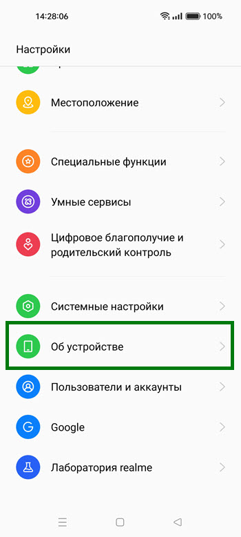 2. Прокручиваем страницу с настройками в самый низ, и переходим в раздел «Об устройстве».