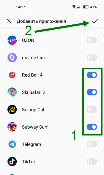 5. Теперь нужно указать какие приложения и игры, будут доступны маленькому пользователю.