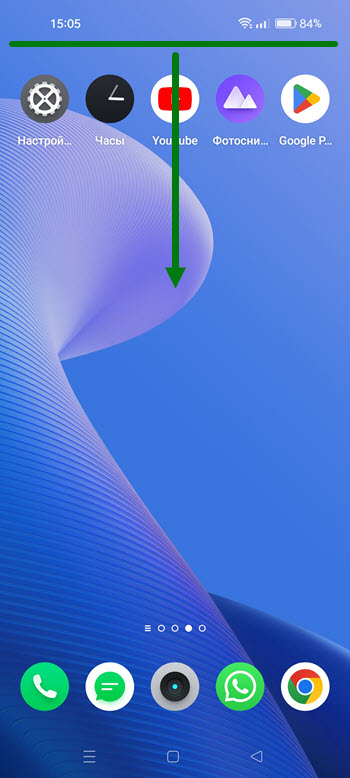 1. Полностью опустить шторку, свайпом вниз.