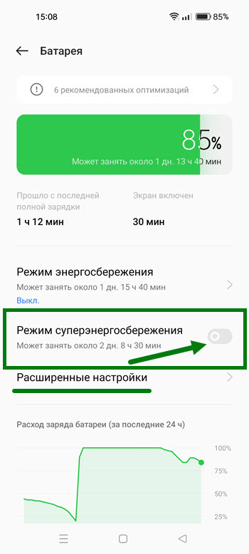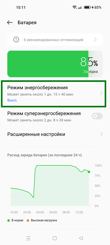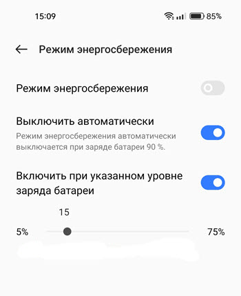 Режим энергосбережения, предусмотрен во всех Андроид смартфонах, в том числе и на китайских гаджетах, от компании Реалми.