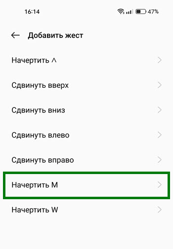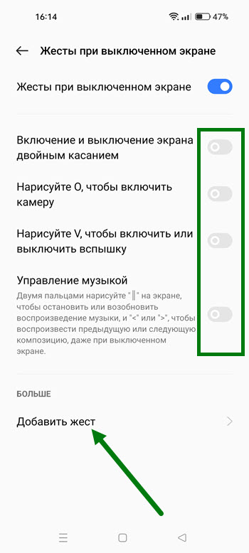 Активируем нужные жесты, если нужно добавить ещё, жмём на нижнюю строчку.