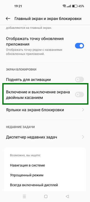 2. Далее переходим в раздел «Главный экран и экран блокировки».