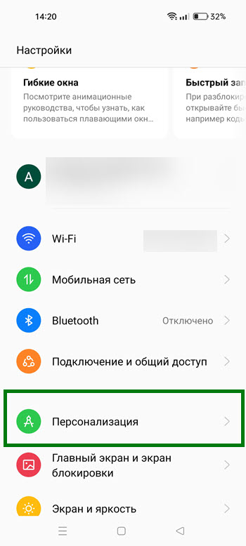 2. Далее переходим в раздел «Персонализация».