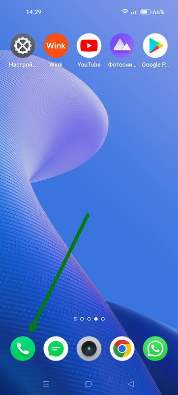 1. Заходим в приложение «Телефон», нажав на зелёную трубку.