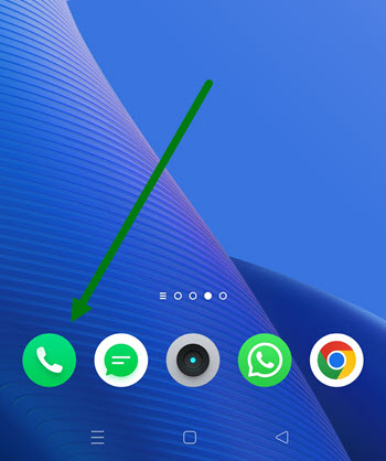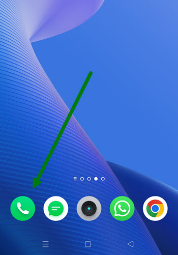 1. Запускаем приложение телефон, нажав на зелёную трубку.