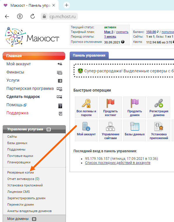 Как я уже говорил в прошлой статье, Макхост автоматически делает копии, через определённое время.