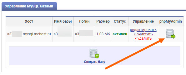 3. Проделываем туже процедуру, только вместо сайта указываем нашу базу данных.
