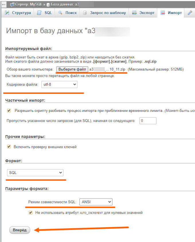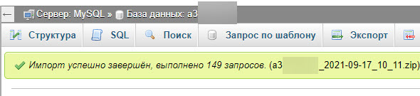 6. На этом всё, импорт успешно завершён, сайт восстановлен.