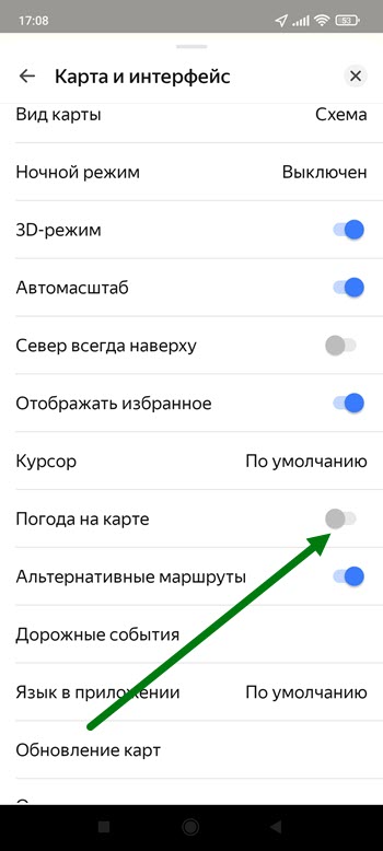3. Прокручиваем страницу вниз, до расширенных настроек, и переходим в раздел карта и интерфейс.